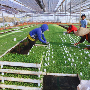 – Trồng cây: Đất được cày bừa kỹ, phơi ải tốt, bón lót nhiều phân hữu cơ, phân chuồng hoai mục có bổ sung thêm 50kg/1.000m2 phân tổng hợp NPK (16:16:8) bằng cách rải đều trên mặt luống rồi dùng cuốc xới đều sâu 20cm trước khi trồng cây. Lên luống rộng 130cm, cao 15-20cm, rãnh luống rộng 30cm. Trồng 5-6 hàng trên mặt luống cách nhau 15-18cm, cây này cách cây kia 10-12cm, mật độ khoảng 50-60 cây/m2. Trồng xong, ngày tưới 2-3 lần (5 giờ sáng, 10 giờ sáng và 2 giờ chiều) để cho cây con nhanh bén rễ. Sau 10-15 ngày, khi cây con đã bén rễ, giảm tưới xuống còn 1-2 lần/ngày tùy thời tiết trời râm hay nắng. Khi cây đã lên xanh cần dùng lưới nilon đen để che bớt 30-40% ánh sáng nhằm giúp tăng chiều dài cành hoa, tăng chất lượng hoa sau này.