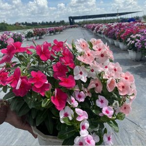 Dòng Mega Bloom là giống dừa cạn F1 có đường kính bông hoa lớn nhất. Mega Bloom được lai tạo để chịu nhiệt và độ ẩm với khả năng kháng bệnh. Người trồng sẽ ấn tượng với thời gian nở sớm và hoa nở đồng đều, cây khoẻ hoa to, màu sắc rực rỡ là điểm đặt biệt của dòng này.